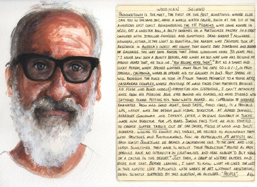 There is a combination of warmth and reserve in both the portraits and the texts, which are neatly handwritten, all in caps, with key words and phrases underlined.
