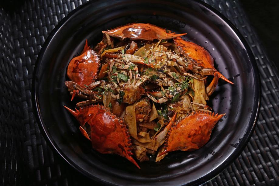 The entrees “for two’’ are a sight to behold: These large trays could easily feed a small group, supplemented by skewers and tapas. The grilled fish ($32) is a whole tilapia bathed in a spicy Szechuan peppercorn and cumin-scented broth. The chili crab ($30) stir-fries five blue crabs in chili oil and herbs. With either of these, choose three vegetarian accompaniments, such as shiitake mushrooms, lotus root slices, and bean curd sticks.