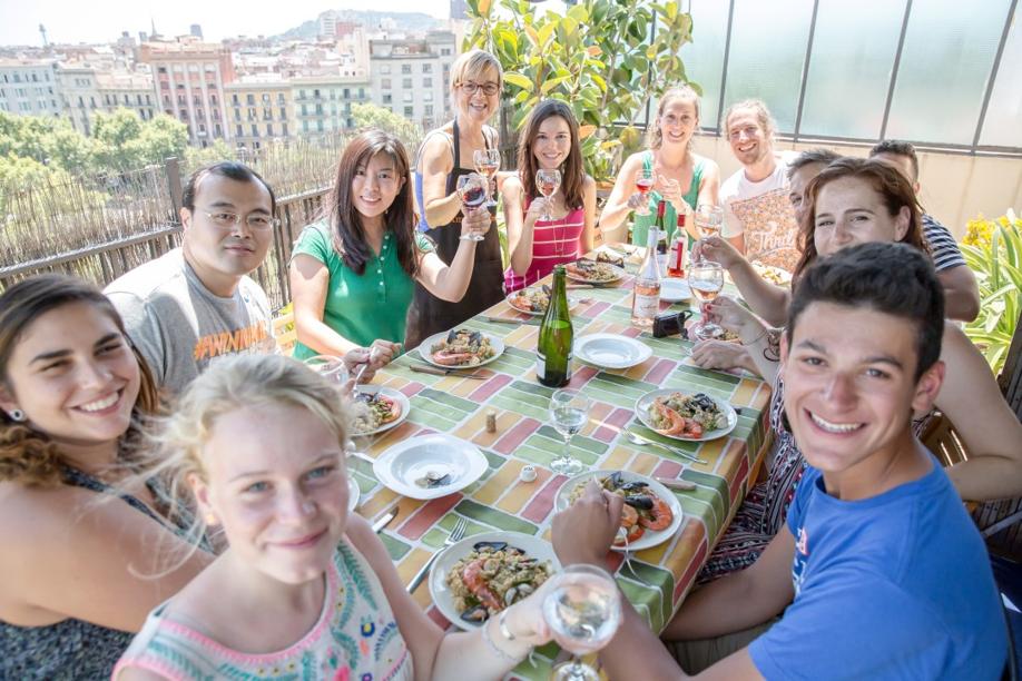 ‘Today we’re going to learn how to make paella. Not just paella. A good paella,’’ says Marta Amb Tu Cuinem as she address the 10 strangers who have gathered around the kitchen table in her Barcelona flat. The cheery space is filled with an array of students from various corners of the globe — a couple from Beijing, some Spanish exchange students, a Barcelona native, and several groups of Americans. On the table sits an array of various sized bowls housing the ingredients needed for today’s demonstration. Cuinem goes around the table and picks them up, one at a time, explaining how the head-on prawns, Montserrat tomatoes from the local La Boqueria market, and large rubbery cuttlefish will be essential to bringing her beloved dish to life.