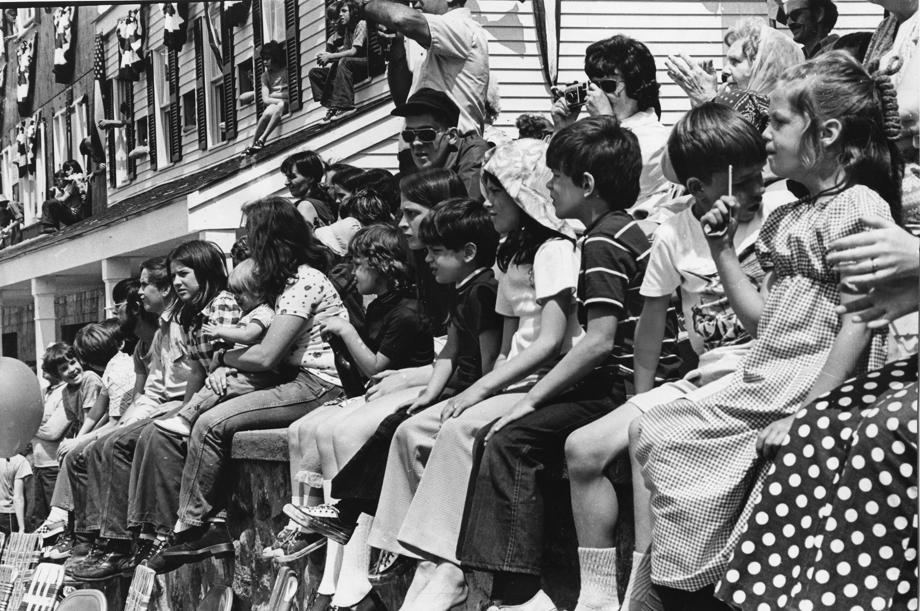 Spectators, some of them sitting in second-story windowsills, lined Walpole’s Main Street on May 18, 1974, for a parade marking the town’s 250th anniversary. It was a three-hour procession including floats and 30 bands, according to a Globe article.