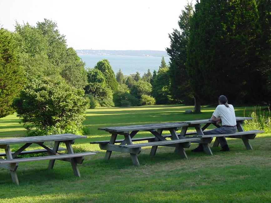 The retreat center is on Standish Street on a peninsula jutting into Kingston and Duxbury bays. A rutted dirt road lined with tall trees leads to a five-bedroom house with a rolling expanse of lawn down to a private beach.