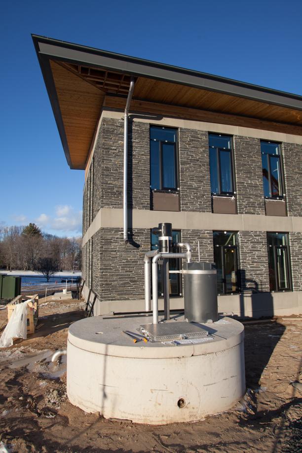 The private college’s first new building in 20 years is a model of sustainability, featuring composting toilets, rooftop solar panels to power the building, and a water supply that draws on rainwater stored in underground cisterns. The building, slated to open in March, will use zero net energy, produce its own water supply, and manage its wastewater.