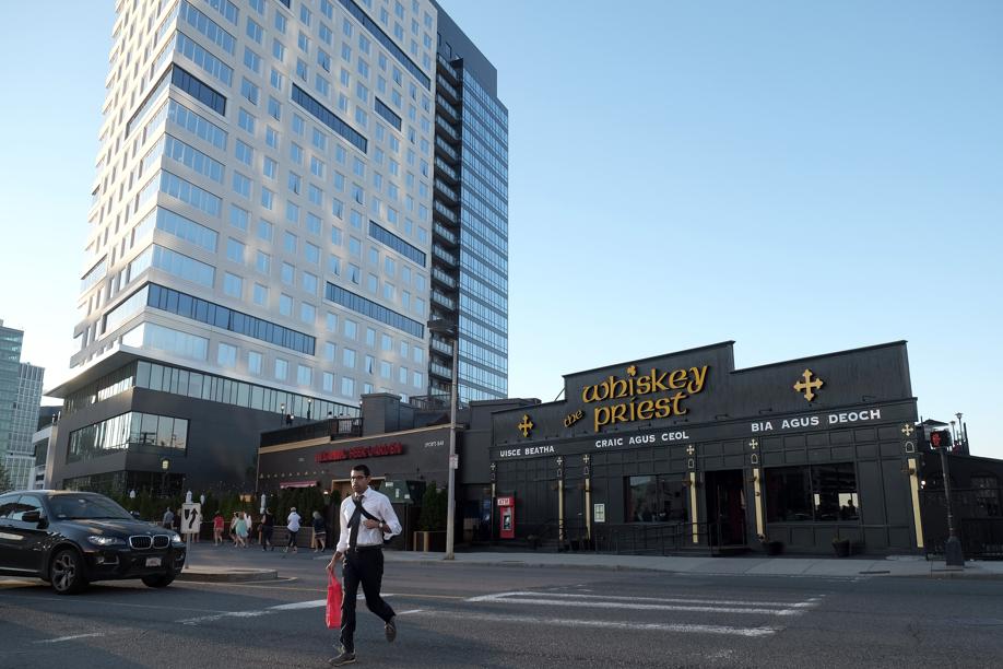 The 3,000-square-foot swath of sidewalk is currently owned by the City of Boston, which leases it to developer Jon Cronin for use as outdoor seating at his waterfront bar. Now Cronin plans to replace the Atlantic Beer Garden and an adjacent bar with a $260 million luxury condo tower, and he needs the patio space for his project.