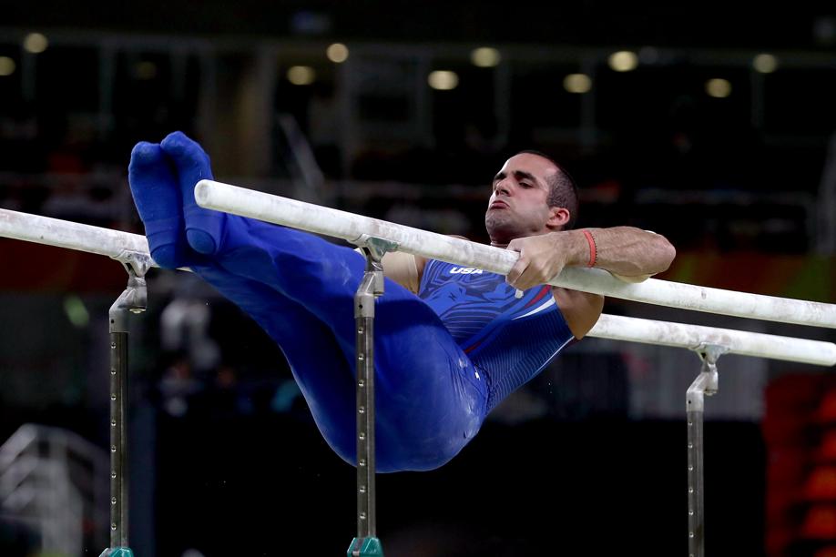 Danell Leyva performs on the parallel bars on his way to two silver medals in gymnastics. (Julian Finney/getty images)